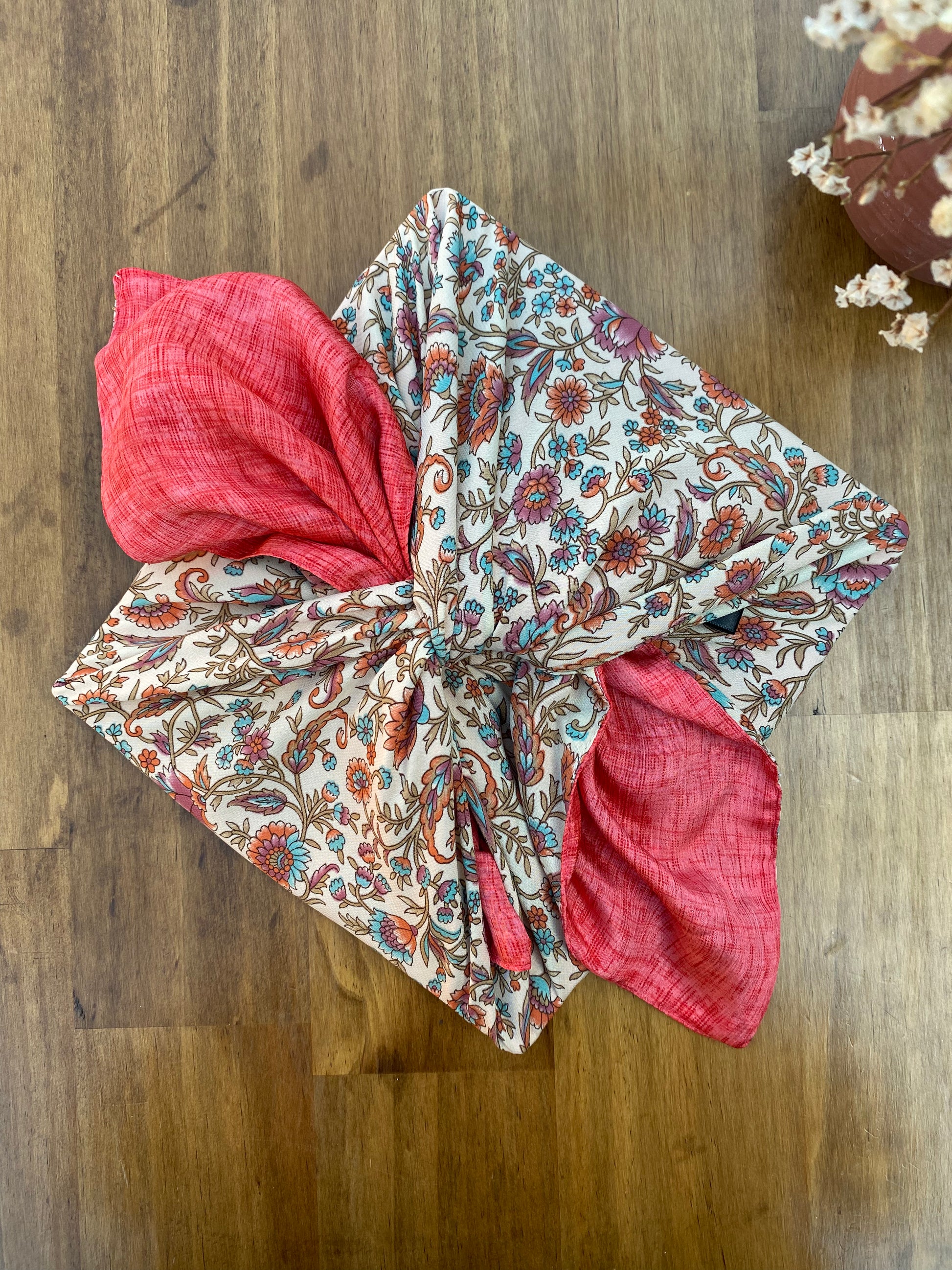 Our ethical gift wrappers are made by repurposing existing fabrics that would otherwise be destined for landfill. They are inspired by the traditional Japanese art of fabric wrapping known as “furoshiki”, which has been used for thousands of years and has become a fantastic alternative to paper and plastic.