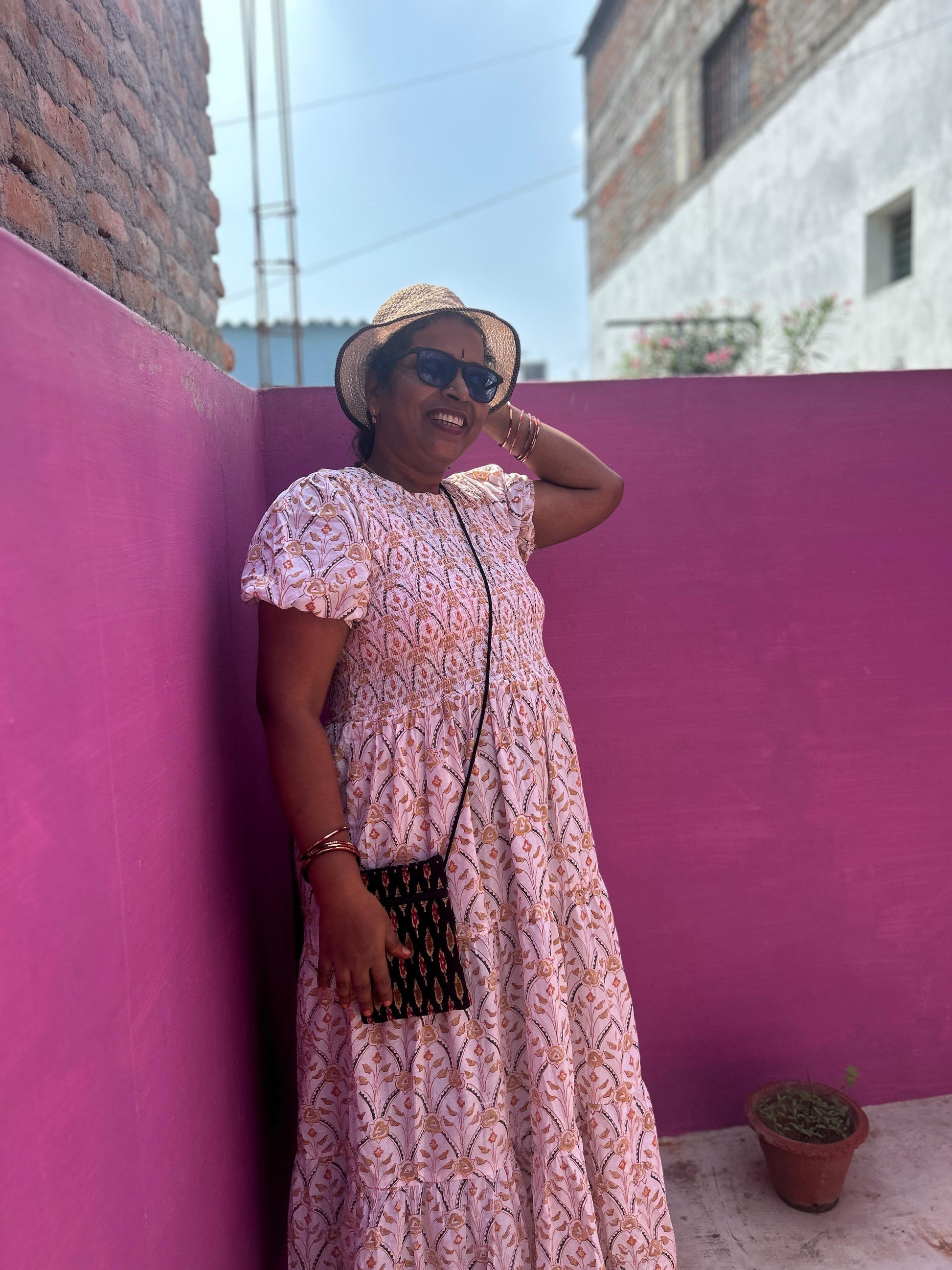 Graceful, timeless, and thoughtfully crafted, our Sewing the Seeds Dress is a celebration of elegance and empowerment. This dress features romantic puff sleeves, a flattering silhouette, and intricate detailing that reflects the artistry of hand-sewn textiles.